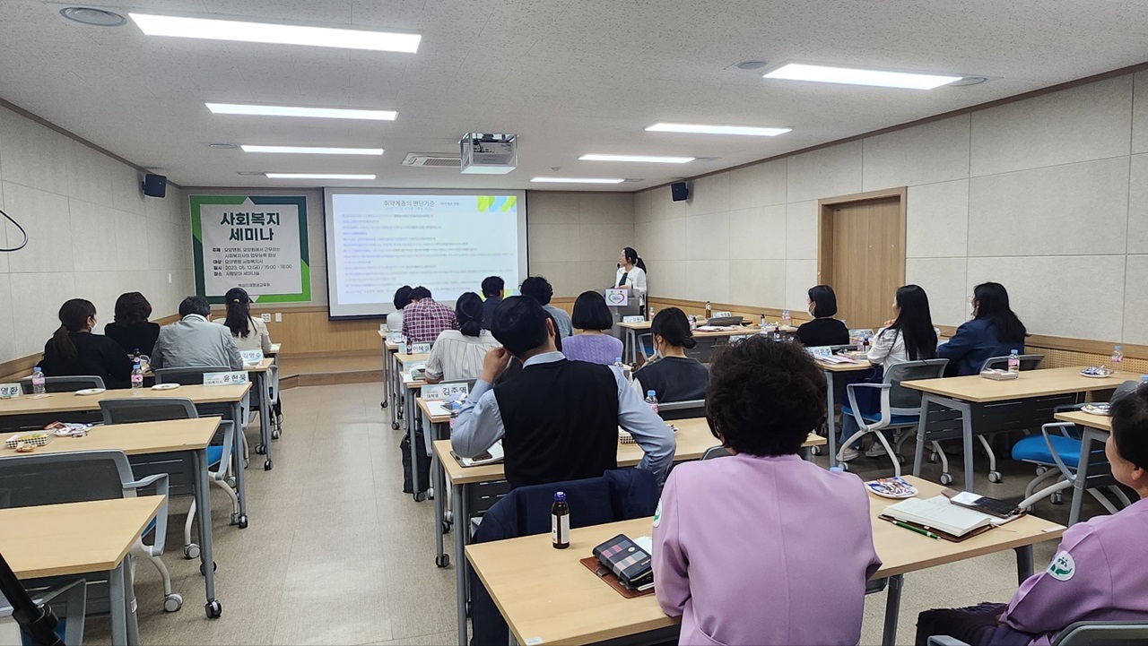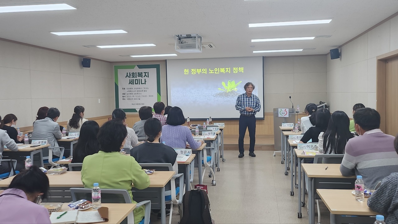 이어서, 박주종 전북사회복지사 협회장은 “현 정부의 노인복지 정책”을 강의하시면서 “노인을 No人과 Know人이 아닌 그냥 사람으로 바라보면서 고령화는 우리 모두의 미래이기에 고령화사회는 모든 연령을 위한 사회임을 인식해야 한다고 당부하셨다.